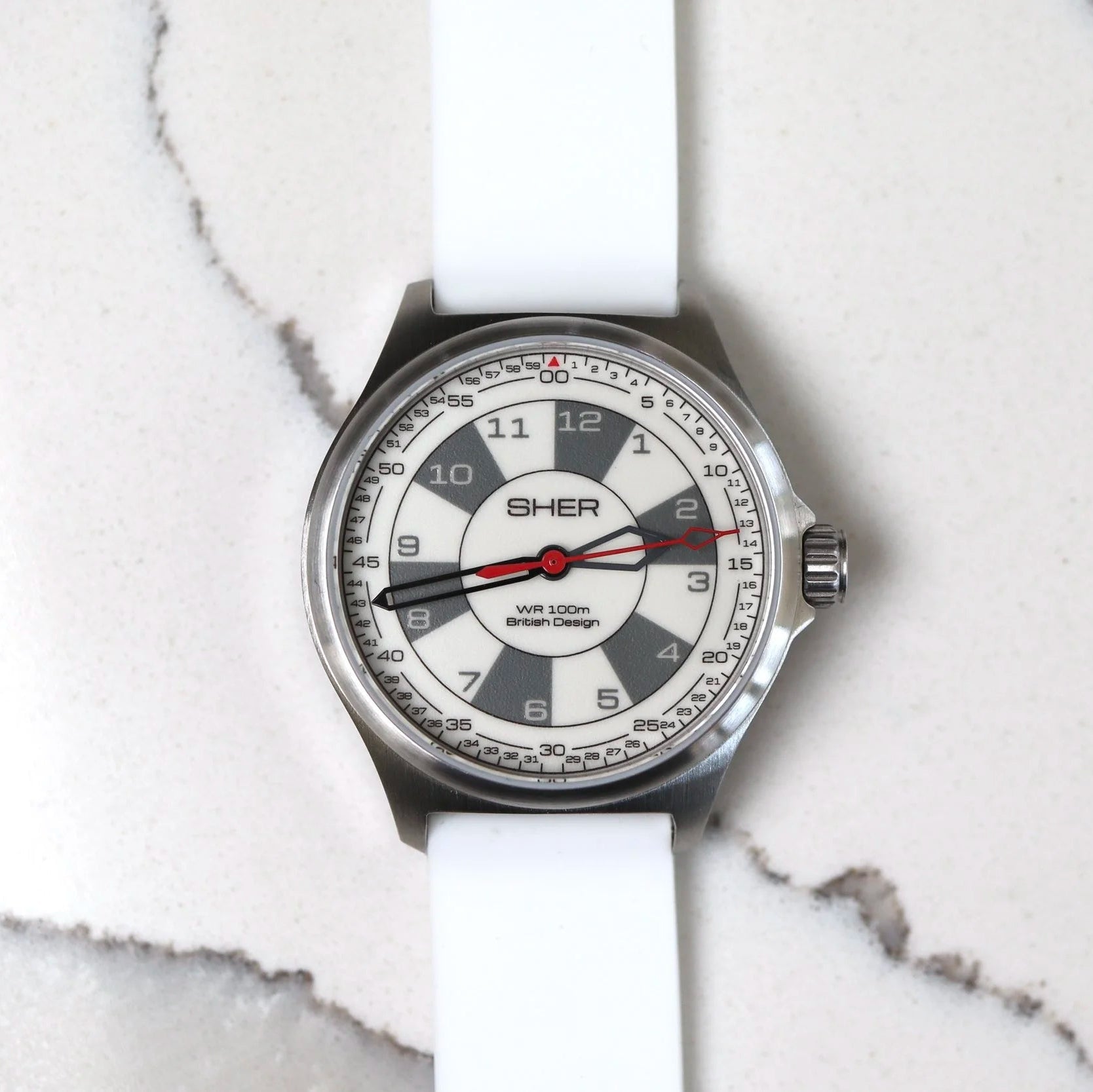 The Sher Kids Watch is A grown up looking watch for kids that is specifically designed to make telling the time easier. The hour markers are offset and segmented to make it super clear where the hour starts and ends and the full minute track makes it super easy to know the minutes at a glance! Housed in a 32mm stainless steel case, its proportions are perfect for kids ages 5 and up. Adults with smaller wrists can wear it too!